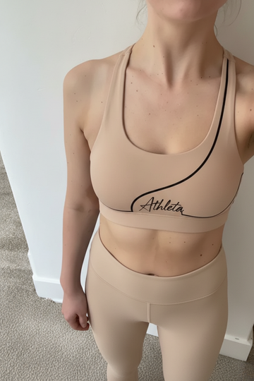 The 'Fierce Focused' band on this striped bra makes me feel instantly empowered and ready to crush my goals. It’s the perfect mix of cute and motivational, giving me a confident boost every time I put it on.