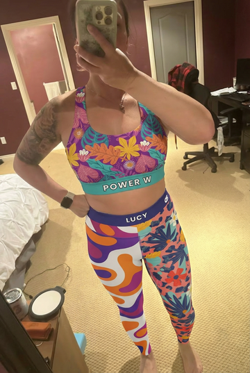 Wearing this sports bra makes me feel incredibly supported and confident thanks to the secure wide band. The unique pattern adds a fun, energetic vibe that really boosts my mood during workouts.